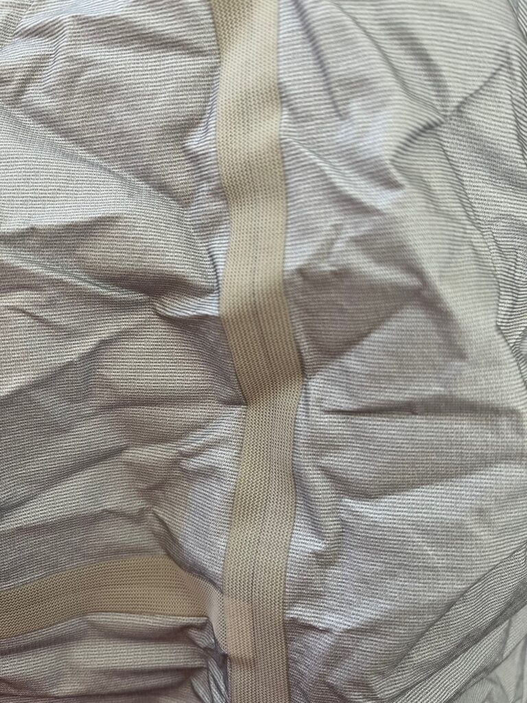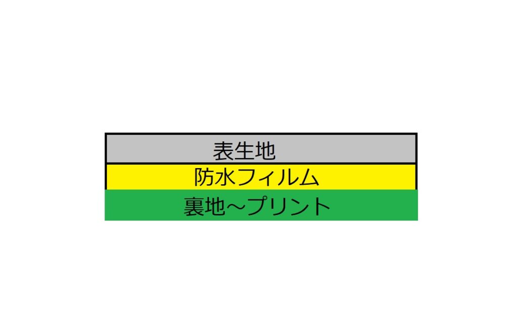 2層構造のものは「防水フィルム+表生地」という構造になっており肌面と防水フィルムが直接触れてしまいますのでメッシュ生地を縫い付けているものが多くありましたが最近では見かけなくなりました。